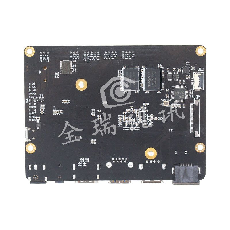 板载2GB内存+16GB EMMC存储,网络集成以太网,2.4G/5G双频WIFI+蓝牙模块,支持全网通4G模块;通讯接口支持USB3.0,双路USB2.0摄像头接口,2路串口, GPIO等;显示支持HDMI2.0/VGA/EDP/RGB888接口,支持扩展多种类型的双屏同显异显。
