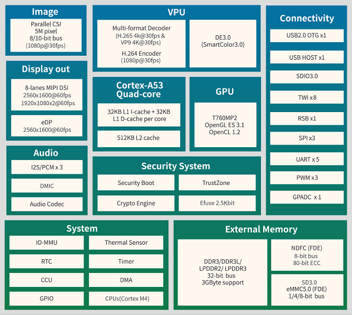 全志A63四核64位ARM Cortex-A53 1.8G主频 |