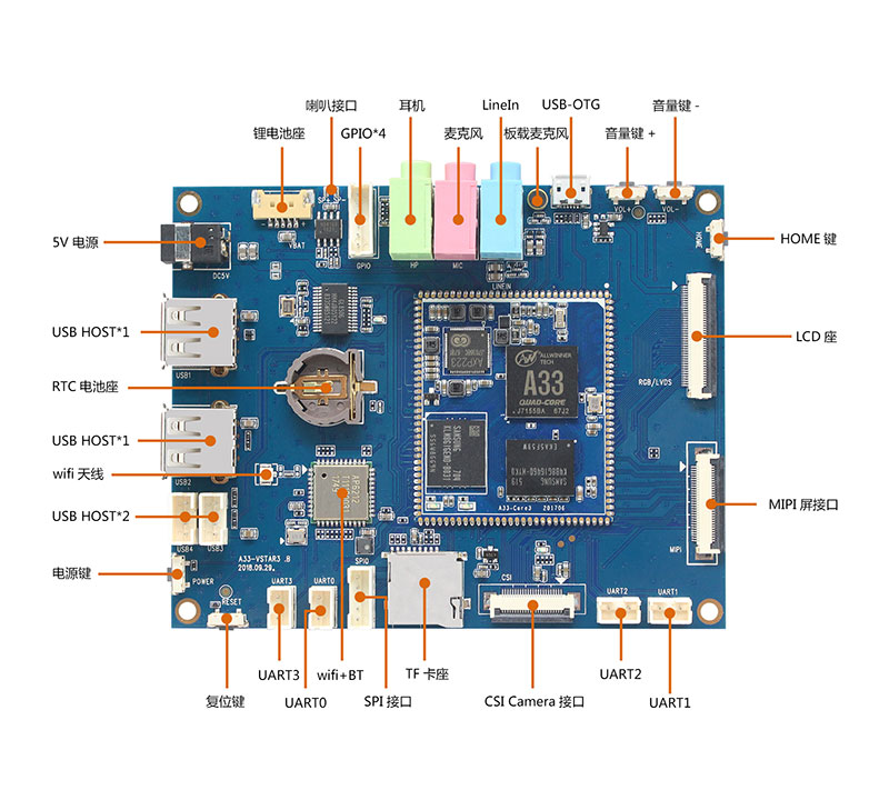 全志A33 四核ARM Cortex-A7 1.2G主频 |