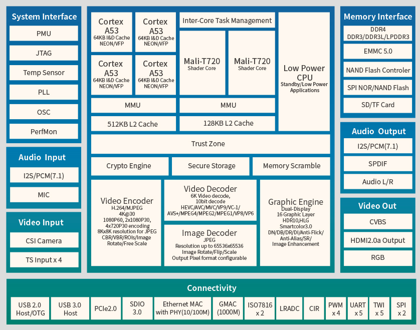 全志H6 四核64位ARM Cortex-A53 1.8G主频 |